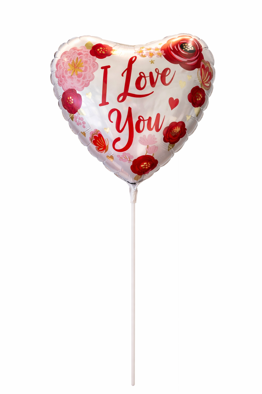 Soft romance with a floral twist. This pearly white heart balloon is decorated with delicate blooms, golden accents, and graceful “I Love You” script. It feels gentle, elegant, and heartfelt all at once.